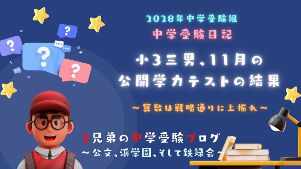 小4の11月公開学力テストの結果が発表されました。 10月は算数の難易度が上がり、奇跡的によく解けていたため偏差値が大幅アップし小躍りしていました。 まぁ国語、理科がそれほどだったので順位は伸びませんでしたが、算数が良ければ本人的にはオッケーで...