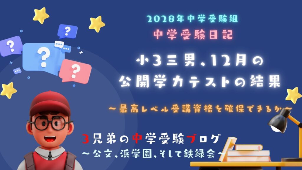 先日、小4の12月公開学力テストの結果がマイページに出ていました。 小6次男がいよいよ本番ということであまりかまえていませんが、なんとか耐えてほしいところです。 11月は三男にしては悪くはないものの、もうちょっとというところでした。 先日行われた...