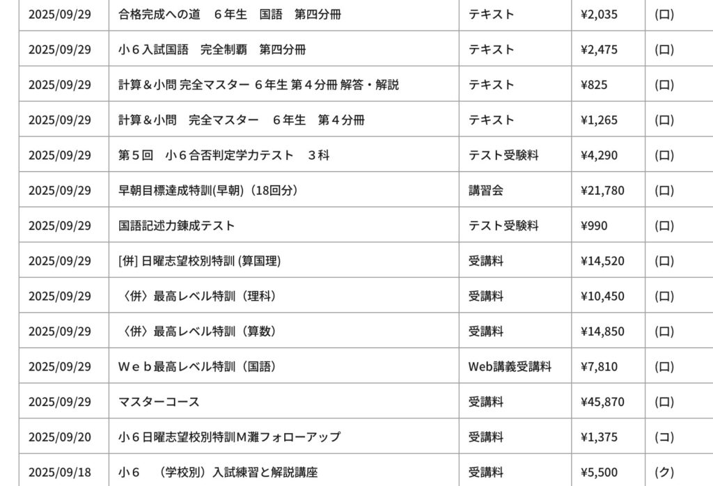 ただ、外部の塾イベントには参加していませんし、個別や家庭教師はやっていませんので、塾への支払いがかかった費用の全てです。