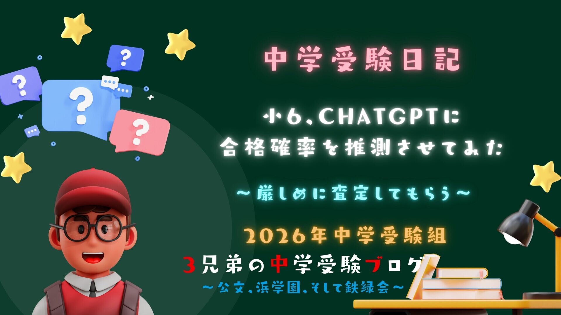 次男は手応え的には8割ありそうと言っていましたが、計算間違いも十分ありうるので期待せずに結果を待ちたいと思います。