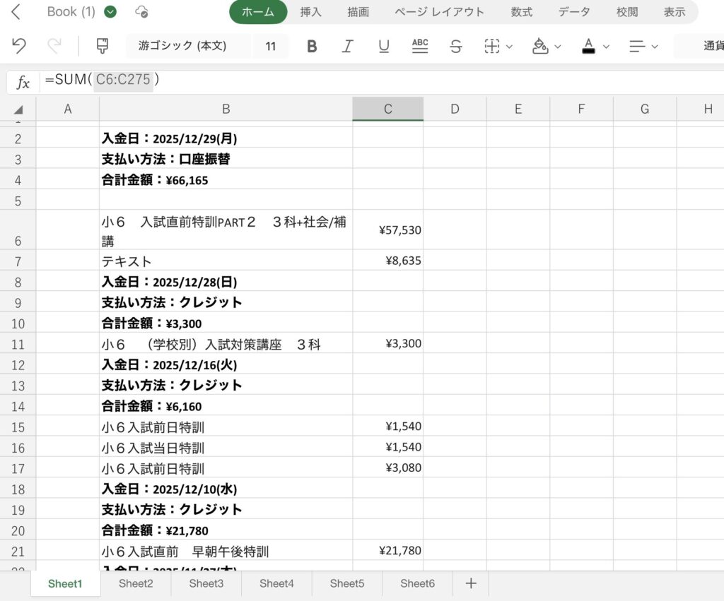 で、次男の小6(2025年1月〜12月まで)にかかった費用は、、、